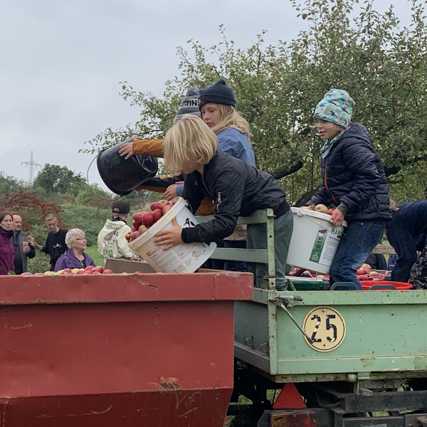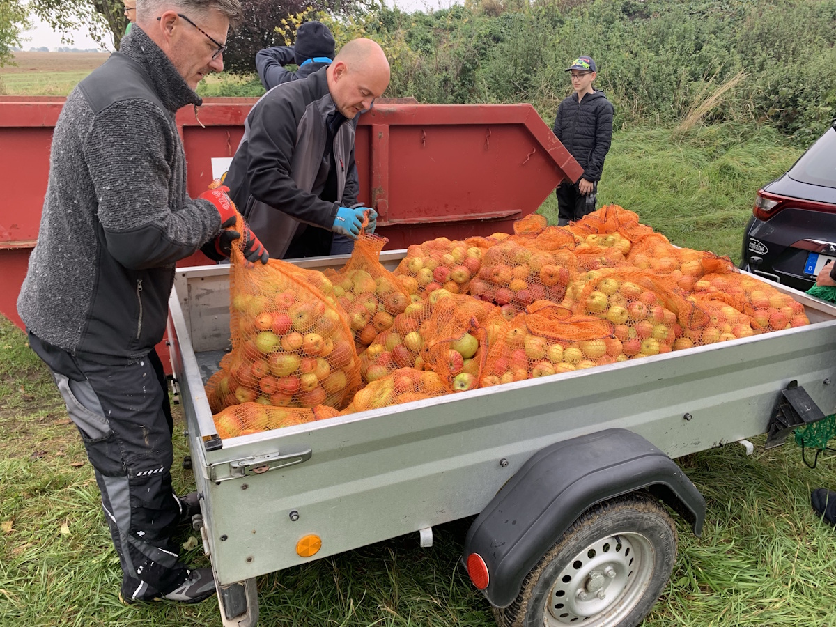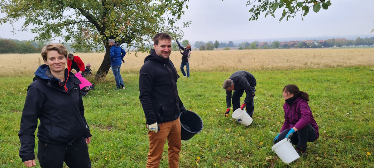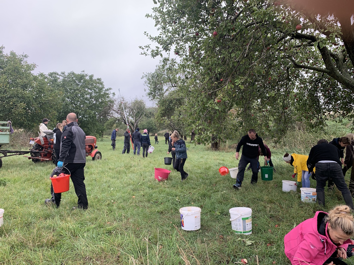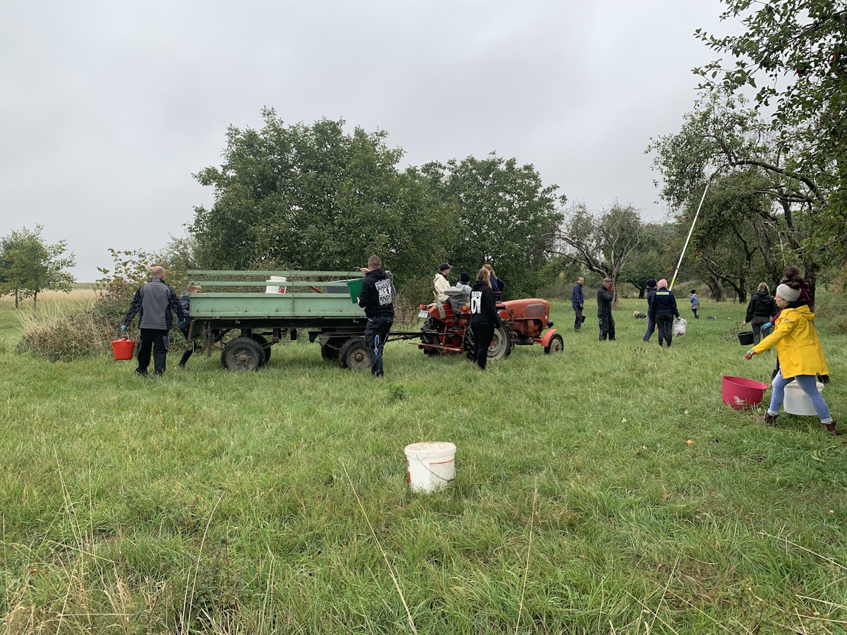 Bereits zum 3. Mal sammelten die Wohlsborner Kinder mit Ihren Eltern, Großeltern und Freunden auf den Wohlsborner Streuobstwiesen, am Wäldchen und am Friedhof, Äpfel für einen guten Zweck.