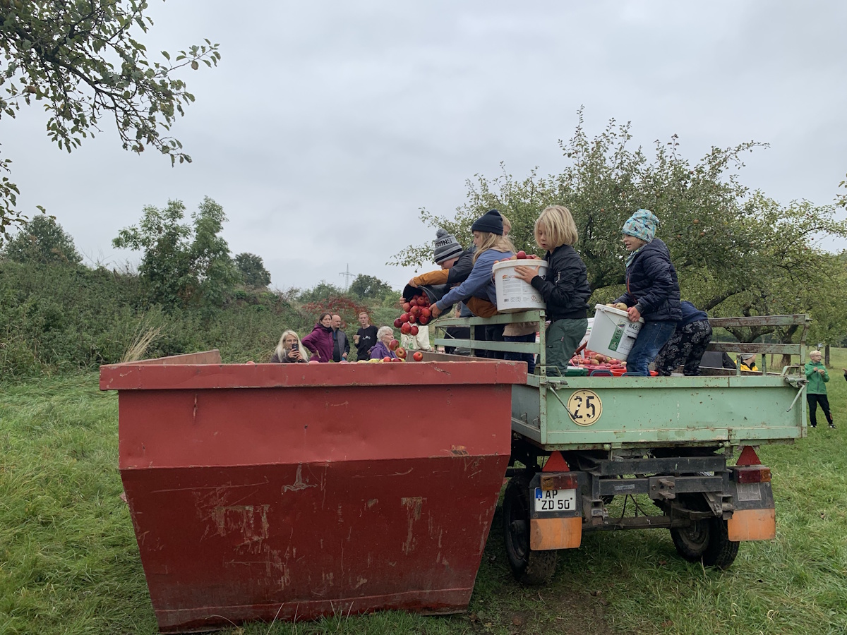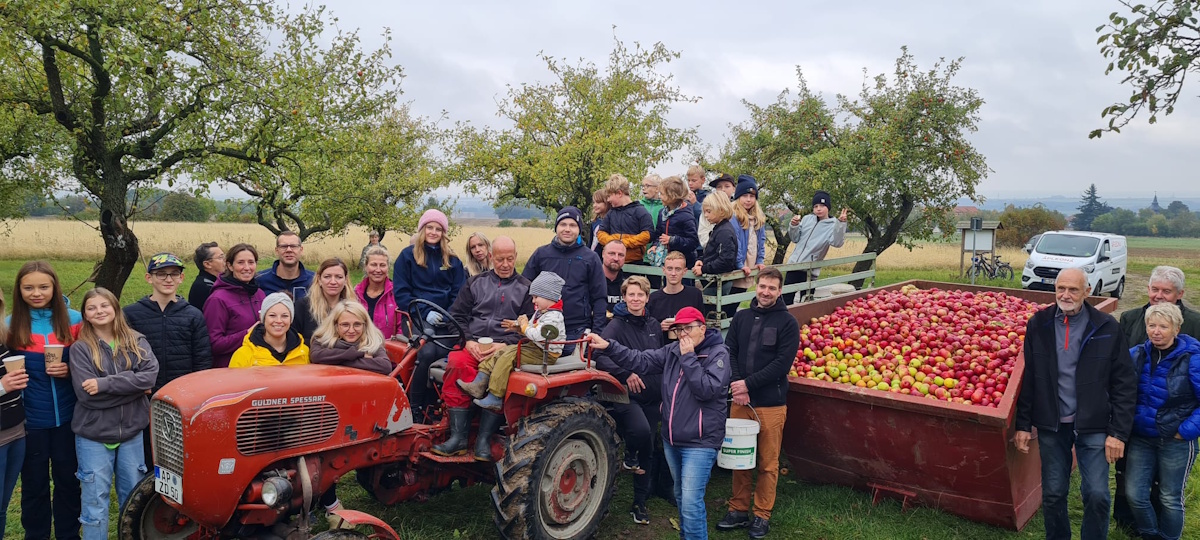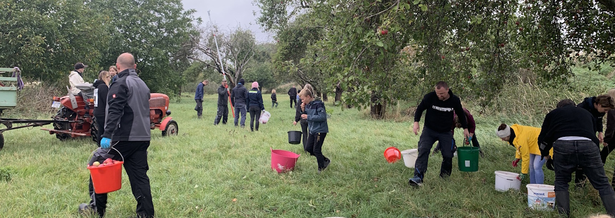 Bereits zum 3. Mal sammelten die Wohlsborner Kinder mit Ihren Eltern, Großeltern und Freunden auf den Wohlsborner Streuobstwiesen, am Wäldchen und am Friedhof, Äpfel für einen guten Zweck.